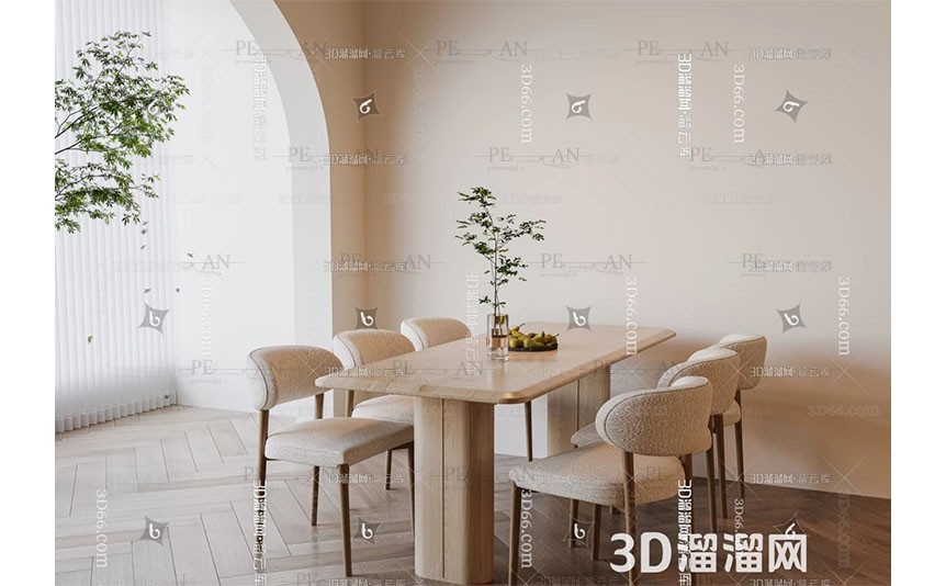 Modern dining table and chair combination cream dining table and chair combination 3D model